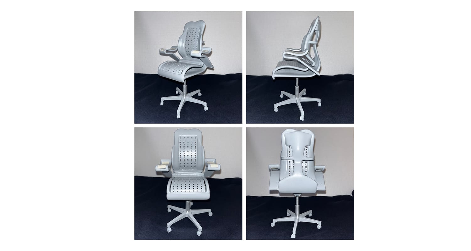 The design of this office chair was developed based on the idea of cantilever architecture while emphasising ergonomics. The backrest and seat part are developed as an integrated design without the need for adjustment by using the tension of the material. The material used is polypropylene, which is a hard material, but the elasticity of the product leads to a comfortable and correct posture. The armrest is a combination of polypropylene and high elastic band, so it does not require any adjustment, allows you to comfortably place your arm, and provides a feature that does not cause discomfort even when you rest your arm for a long time. Due to the nature of the material, this office chair is highly sustainable and induces correct posture by providing strong support for the hip and lower back without additional adjustment. In this way, it provides a tilting function using the characteristics of the material and provides a function that provides comfort for movement through a flexible frame.